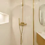 Az apartman vendégei élvezhetik a hajszárítóval és törölközőkkel felszerelt fürdőszoba kényelmét. Emellett talál külön WC-t és zuhanyzót.